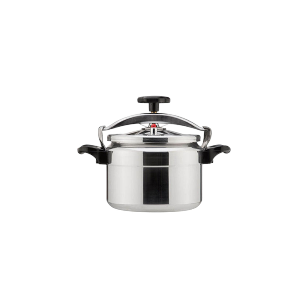 La olla a presión Cóndor de 10 litros está fabricada en aluminio de primera calidad con acabado cromado para mayor resistencia. Cuenta con asas de baquelita que se mantienen frías al tacto. Su mecanismo de presión reduce tiempos de cocción y optimiza energía, ideal para cocinas de alto rendimiento.