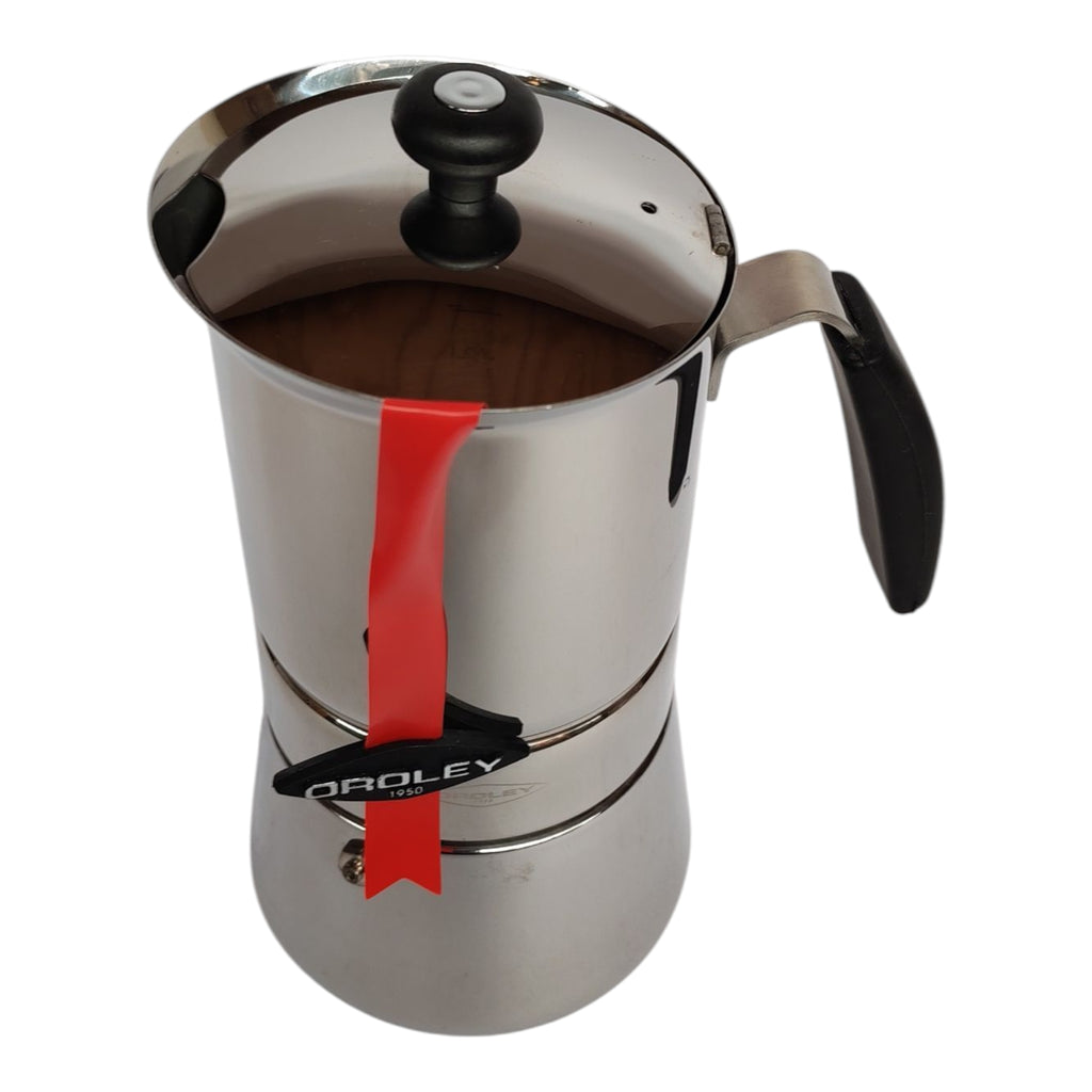Con capacidad para 9 tazas, esta cafetera OROLEY combina elegancia y funcionalidad. Su cuerpo de acero inoxidable garantiza resistencia al desgaste y fácil limpieza. Diseñada para una distribución uniforme del calor, prepara café de gran cuerpo y aroma. Apta para diversos tipos de cocinas, es la elección ideal para familias o reuniones sociales.