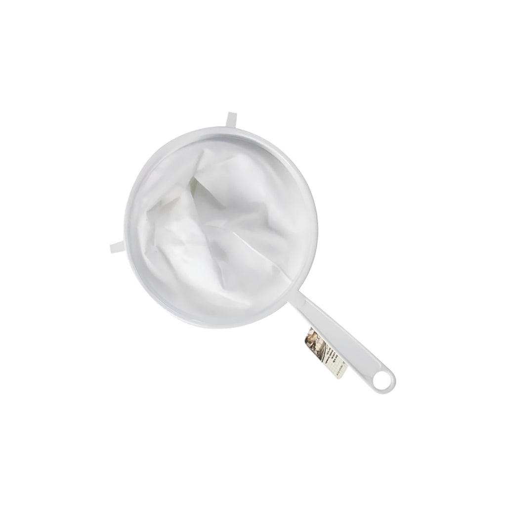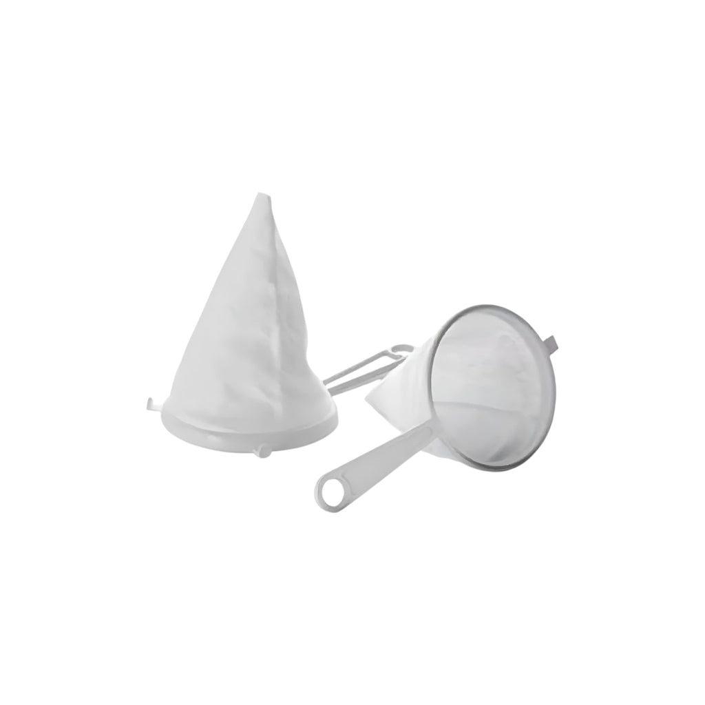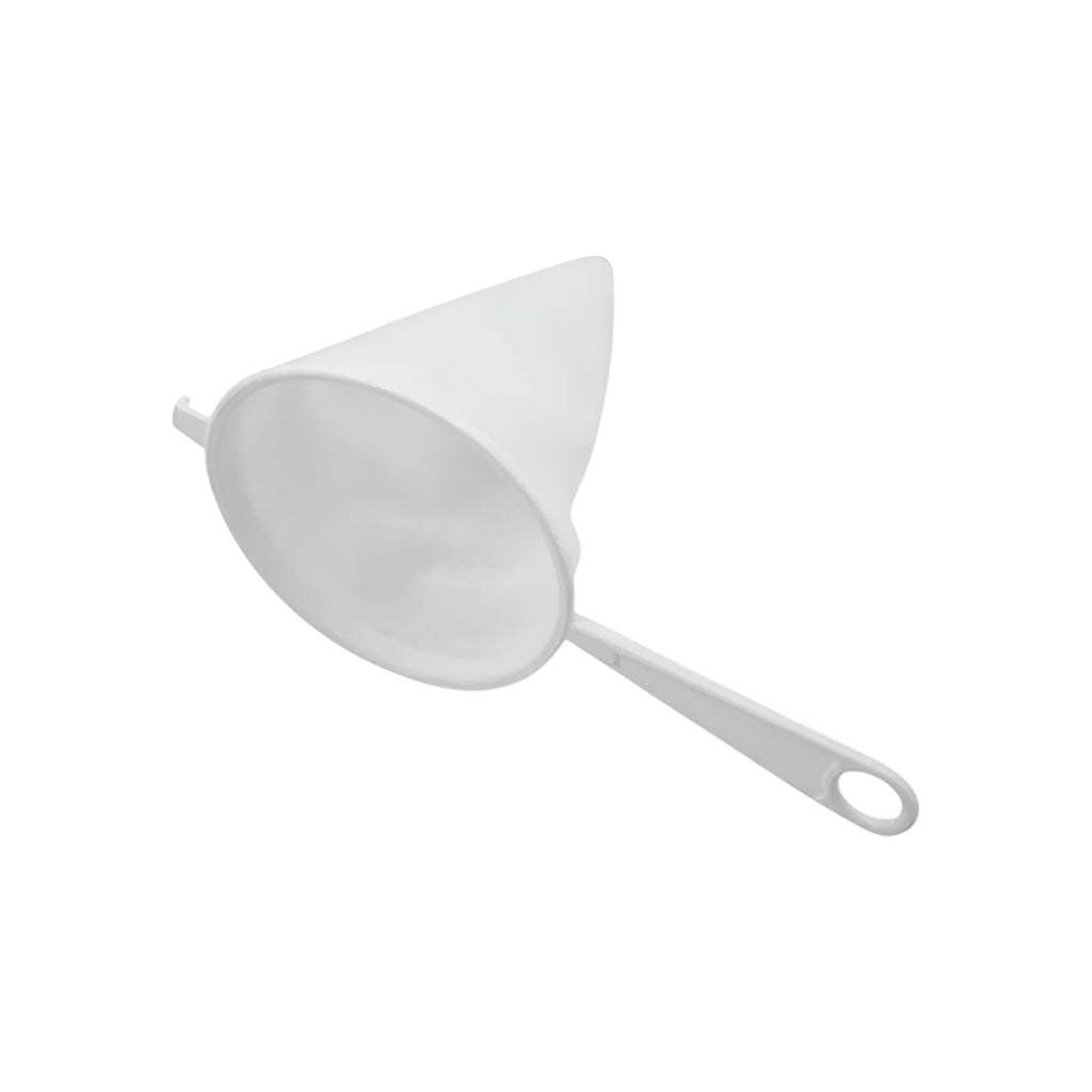 Colador de franela de 14 cm con malla fina y estructura de plástico resistente. Ideal para colar líquidos como café, leche o jugos, garantizando una filtración uniforme sin residuos. Su diseño compacto facilita el uso en cocinas domésticas y profesionales. Material lavable y duradero que no retiene olores ni sabores.