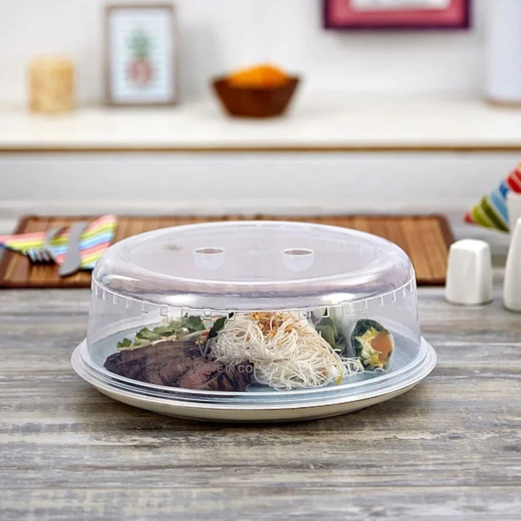 Tapa para microondas de 25 cm de diámetro y 6,5 cm de alto, fabricada en plástico resistente. Evita salpicaduras y mantiene el interior del microondas limpio. Su diseño permite buena circulación de vapor. Ligera, práctica y fácil de lavar.
