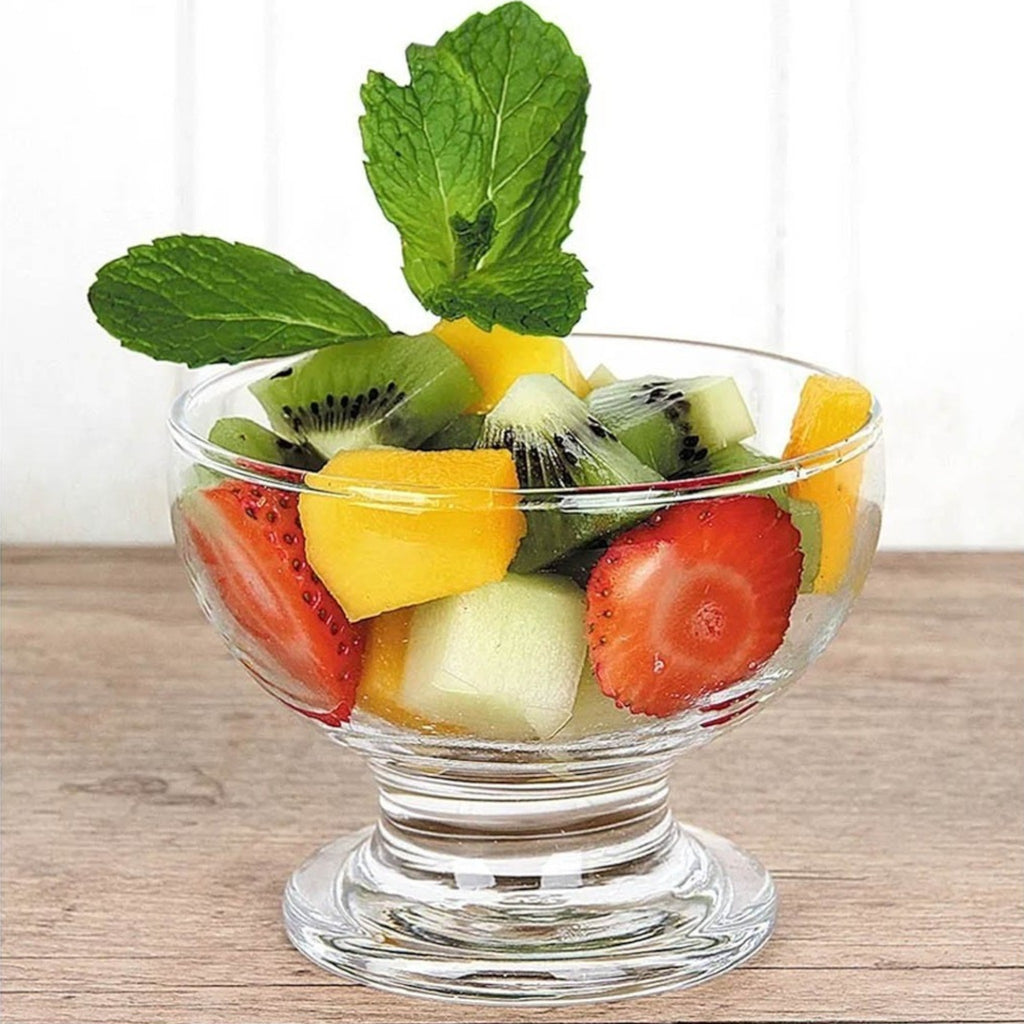 La copa Paulista Nadir de 220 ml es ideal para presentar postres fríos como helados, mousse o gelatinas. Fabricada en vidrio resistente y transparente, realza la presentación de cada preparación. Su diseño elegante y duradero la hace perfecta para restaurantes, hoteles y servicios de catering.